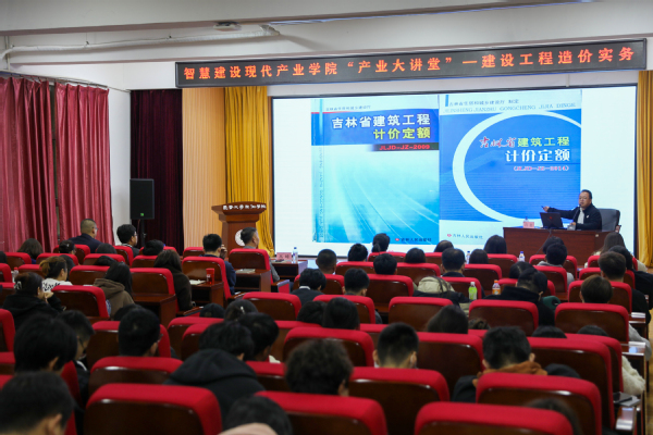为进一步拓宽师生专业视野,帮助师生深入了解行业前沿动态,把握行业发展脉搏,提高相关专业师生工程实践能力和水平。10月30日,工学院智慧建设现代产业学院举办“产业大讲堂”专题讲座。活动邀请智慧建设现代产业学院合作单位吉林省求实建设软件有限公司高级工程师吕志为学院师生作题为《建筑工程造价实务》专题讲座。吉林省求实建设软件有限公司校企事业部总经理焦明晶、校企事业部总监王佳建,工学院院长高峰、党总支书记凤龙、全体教师及2021级、2022级学生参加讲座。讲座由工学院副院长董峻岩主持。