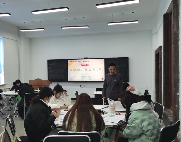 为助力学生备考英语四级考试,营造学习氛围,熟悉考试题型,掌握应试技巧,11月11日至12月10日每周一和周四,基础部面向2023级大学英语A级班学生开放英语四级学习教室(智慧教室101—104),大学英语A级课程组骨干教师利用午休时间进行现场辅导和答疑。2023级大学英语A级班80余名学生报名参加此次活动。