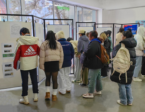 同学们在展区前驻足、讨论