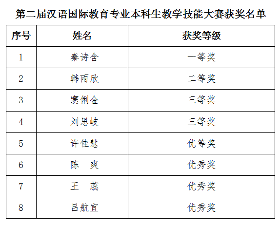 第二届汉语国际教育专业本科生教学技能大赛获奖名单