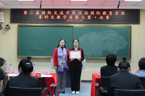 在颁奖典礼上,许可新对本次比赛给予高度评价,希望通过比赛充分调动汉语国际教育专业学生的学习热情,用国际中文教育讲好吉林故事、讲好东北故事,推动人才培养与专业建设高质量发展。