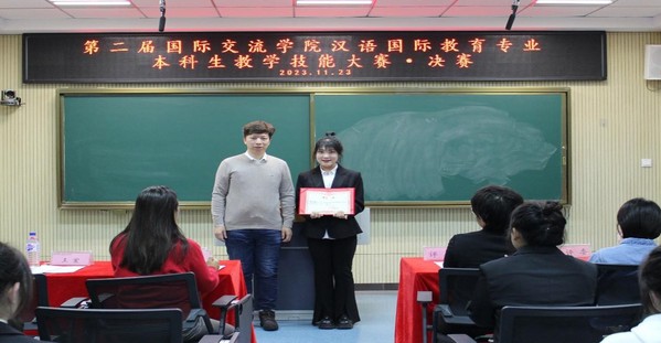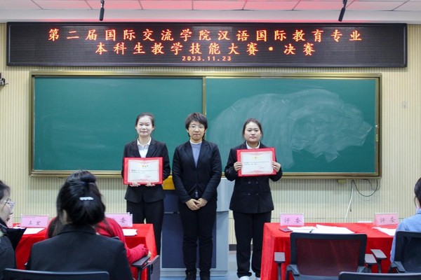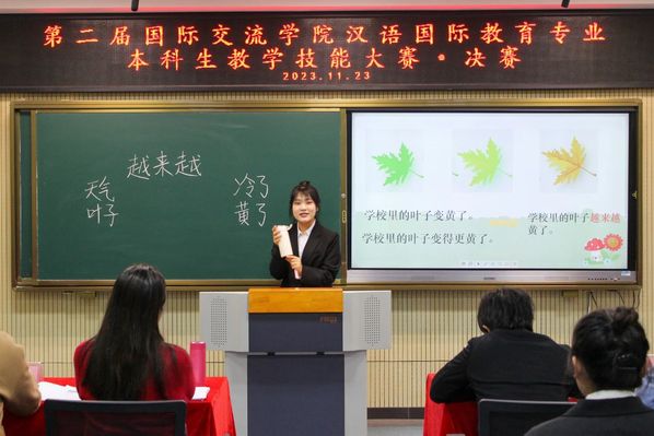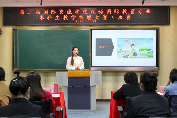 在共建“一带一路”倡议实施十周年之际,为适应国际中文教育与中华文化传播相融合的发展战略和汉语国际教育专业的发展趋势,提高汉语国际教育专业人才培养质量,11月23日,由国际交流学院主办、汉语国际教育教研室承办的第二届汉语国际教育专业本科生教学技能大赛在学校创客中心举行。教学质量监督办公室教学督导王宏教授,国际交流学院院长彭又新教授、副院长许可新教授及汉语国际教育专业教师和学生共同观看比赛。汉语国际教育教研室全体专职教师担任比赛评委。