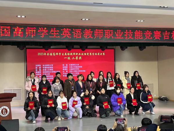 12月17日,2023全国高师学生英语教师职业技能竞赛吉林省赛区决赛在长春师范大学举行,学校外国语学院英语专业吕赫、黄程程、胡佳怡、闫蒂乙、徐彗馨、高舒、游欲晓、徐姝、武娜、包怡乐10名同学获得一级二等奖,张垚、王娣同学获得二级二等奖。