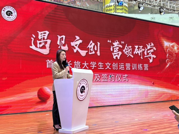 孙国霞介绍了学校实行“专业特色学院+现代产业学院+文旅教育与产业研究院”三院育人模式,搭建政、行、企、校协同机构和平台,助力我省新质文旅产业高质量发展等情况。她表示,校企共同举办训练营、签订校企合作协议,是一次学校与省内最具实力的文创企业的强强联合,也是一次校企深度融合发展、服务行业企业,实现共建双赢的有益尝试。她强调,双方要围绕服务我省新旅游、新消费和文旅新业态,整合文旅和教育资源,优势互补、互利共赢,共同推动文化产业和文旅教育发展。她希望同学们珍惜实习机遇,提高自身专业水平和能力,努力成为产业发展所急需的新时代旅游文创专业人才。
