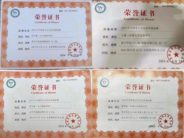 6月13至17日,由吉林省教育厅主办,吉林省学生体育协会高校田径运动专项委员会执行的2024年吉林省大学生田径锦标赛在长春奥林匹克公园举行。学校代表队在体育教研部主任毛岩,教师林子程、王建东、国宝钰、姜海洋的带领下,与省内27所高校83支队伍356名运动员同台竞技、锐意拼搏,在比赛中摘得1银1铜,荣获甲组团体总分第11名的优异成绩。