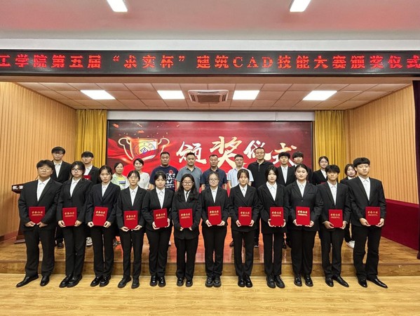 嘉宾与“求实杯”建筑CAD技能大赛获奖选手合影