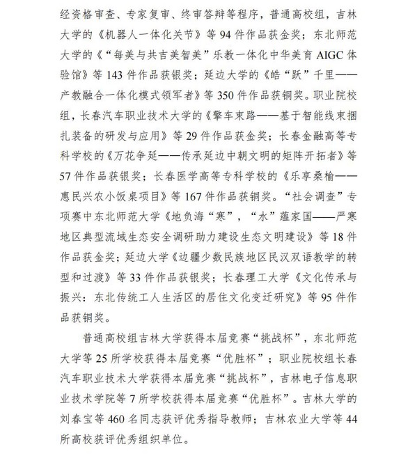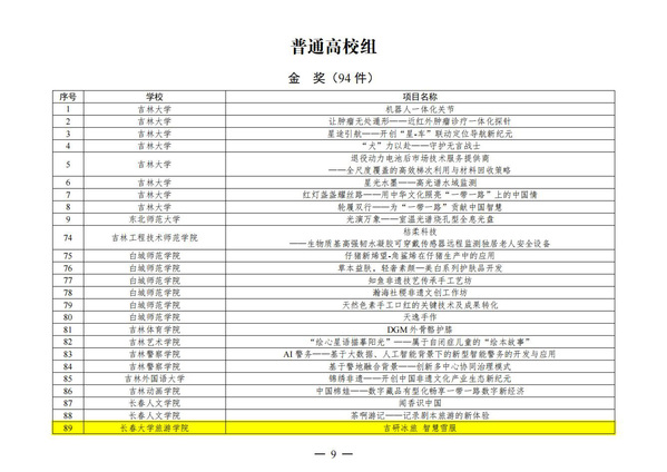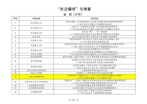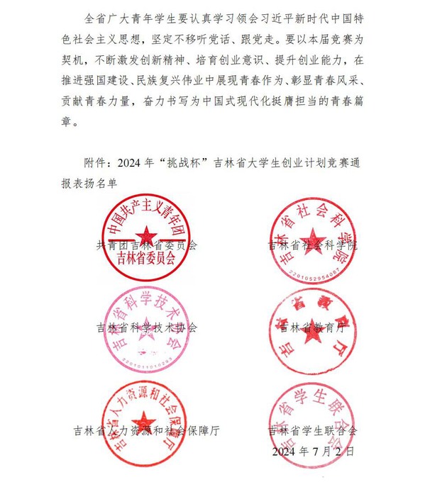 2024年“挑战杯”吉林省大学生创业计划竞赛“社会调查专项赛”金奖名单