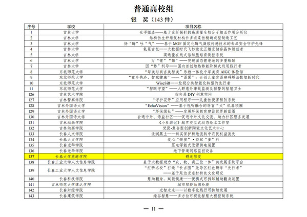 2024年“挑战杯”吉林省大学生创业计划竞赛主赛道银奖名单