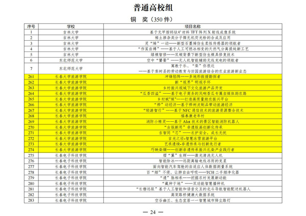 2024年“挑战杯”吉林省大学生创业计划竞赛主赛道铜奖名单