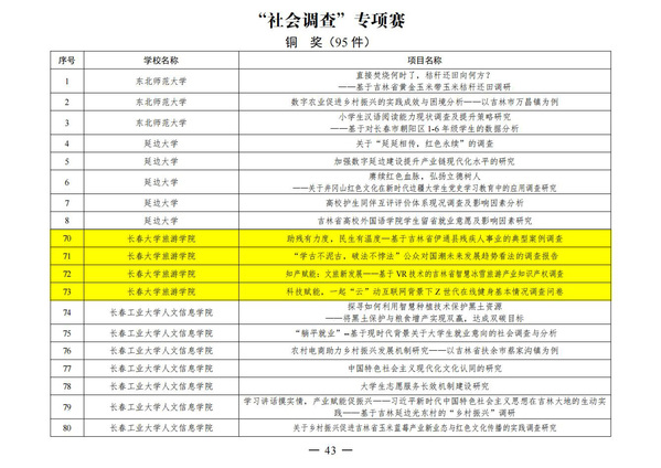 2024年“挑战杯”吉林省大学生创业计划竞赛“社会调查专项赛”铜奖名单