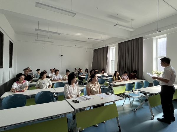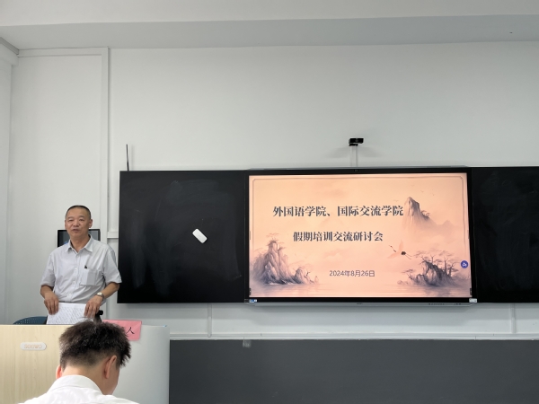 为进一步学习交流学校假期组织的系列教学理念及教学管理培训活动精神和任务要求,切实做好教育教学评价工作整改落实,努力把学习培训成果转化为工作实效,近日,外国语学院、国际交流学院于教学楼204室举办假期培训交流研讨会。副院长许可新、办公室主任、各专业带头人、教研室主任及全体专任教师参加会议。会议由许可新主持。