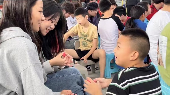 同学们和孩子们一起在康复中心的大厅中表演节目,唱歌、跳手势舞。在表演过程中,同学们将黏土玩具送给孩子们,并耐心细致地教他们如何捏出可爱的黏土模型。大厅中充满了欢声笑语,孩子们在同学们的指导下捏出了她们脑海里独特的图形,他们的天真无邪感动了所有人,同学们深刻感受到只要有信心、有毅力,任何花朵都可以绽放。结束时,同学们与孩子们依依不舍的挥手告别。