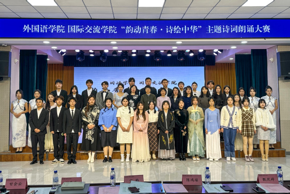 近日,为了丰富拓展学生第二课堂活动,提升学生们的文化素养和语言表达能力,外国语学院、国际交流学院汉语国际教育专业教研室策划并成功举办了“韵动青春,诗绘中华”主题诗词朗诵大赛。经过近一个月的动员与初赛选拔,决赛于11月21日在大学生活动中心举行。外国语学院、国际交流学院副院长许可新、汉语国际教育专业学科带头人陈鸿瑶、汉语国际教育专业全体专职教师以及24级全体新生共同参与了本次决赛。