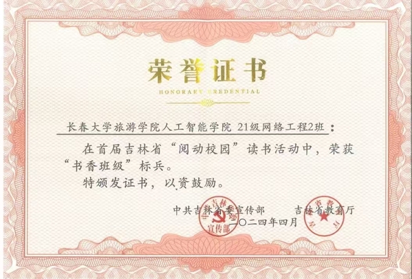 在图书馆、学生工作处、校团委、各学院的联合推动下,金沙官网人工智能学院2021级网络工程2班荣获“书香班级”标兵称号,外国语学院、国际交流学院2022级日语1班娜丽同学和商学院2022级物流管理1班宋怡龙同学荣获“书香学子”标兵称号。