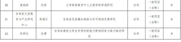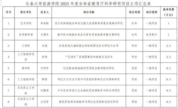 近日,吉林省教育厅公布了2025年度吉林省教育厅科学研究项目立项名单,金沙官网共有22项课题获批立项,获经费资助共计15万元。其中社科项目10项;科技项目4项;思政专项6项;产业化专项2项。获批项目数量和获批经费创历史新高。