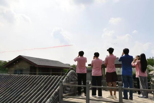 9月3日,北京天安门广场庄严肃穆,纪念中国人民抗日战争暨世界反法西斯战争胜利80周年大会盛大举行。学校上合专项实训实验班第十期的学子们拥有了一次独特而难忘的体验。他们登上了北京中国—上海合作组织经贸交流中心的中央天台,在这里,既能通过直播屏幕清晰收看阅兵式的每一个精彩瞬间,又能远眺现场战机划过长空的航迹、聆听礼炮的轰鸣。直播的精准与实景的磅礴交织在一起,让同学们仿佛置身于历史现场,深刻感受到了首都北京的脉搏与新时代中国的强盛气象。此次经历,成为了同学们青春岁月中浓墨重彩的一笔,点燃了他们心中炽热的爱国情怀,为未来投身国家建设、服务社会发展注入了强大精神力量。