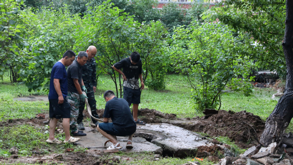 学校后勤保卫系统工作人员加班加点保障汛期校园安全