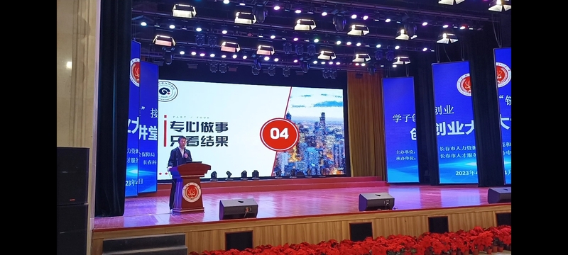 4月26日,由长春市人力资源和社会保障局主办,长春市人才服务中心承办的“学子创业 ‘链’接长春”——创业大讲堂暨优秀大学生创业项目征集动员活动在长春科技学院举办。参会嘉宾有长春市人才服务中心主任李 博、长春市人才服务中心副主任范琳琳、长春市人才服务中心就业创业部部长许广华、长春科技学院院长和相关校领导等,参与学生达1500人。金沙官网创客中心入驻学生企业代表刘嘉诚作为新时代大学生青年创业者杰出代表受邀参加会议并做了精彩的主题宣讲。