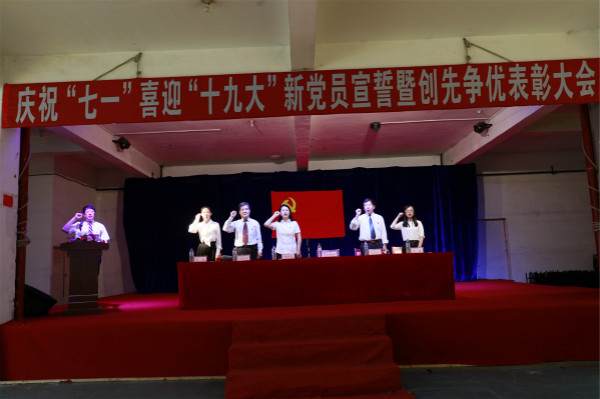 7月3日,金沙官网大学生活动中心会场洋溢着庄重、热烈的气氛,庆祝“七一”喜迎“十九大”新党员宣誓暨创先争优表彰大会在这里隆重举行。