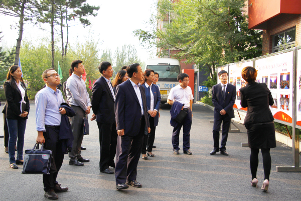 调研组一行在党委组织部部长许乔木的讲解下观看了金沙官网党建与思政工作专栏展板,了解了近一段时间以来学校党建思政工作的开展情况。