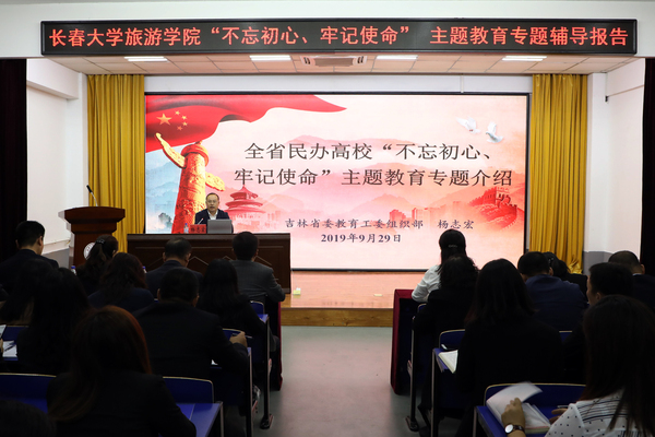 为推进“不忘初心、牢记使命”主题教育深入开展,9月29日,学校邀请省委教育工委组织部长杨志宏来校作“不忘初心、牢记使命”主题教育专题辅导报告。学校副董事长郑晓明、校长刘耀辉、党委书记张洪昭,部分学校党政班子成员、部分机关处室负责人、科级以上党员干部、各基层党组织书记、组织员以及党员代表共计200余人参加了专题辅导报告会。报告会在筑梦报告厅举行,会议由张洪昭主持。