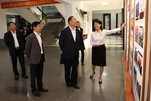 会前,杨志宏在学校领导的陪同下,参观了“学习筑梦园”、室内羽毛球场和“新时代新长旅”办学成果展。