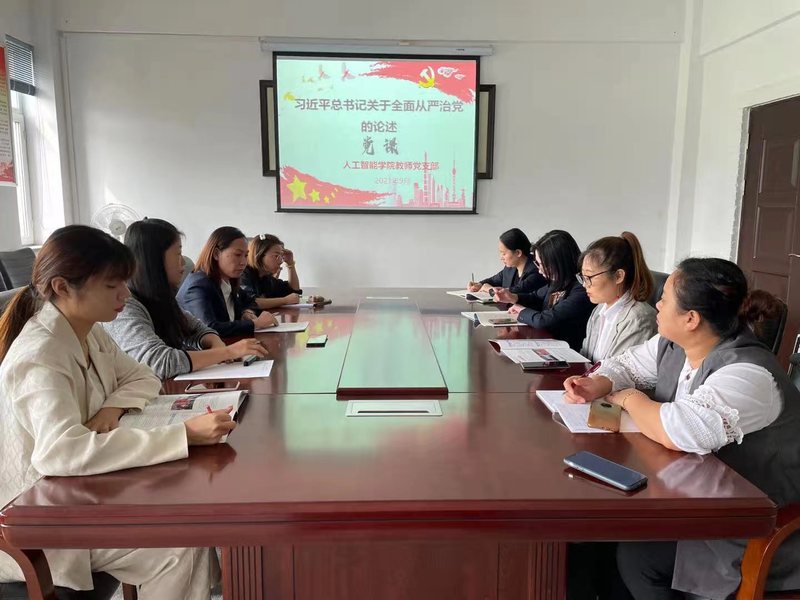 我院教工党支部于2021年9月9日中午12点20分,在综合楼201室召开此次《习近平总书记关于全面从严治党的重要论述》专题党课。本次党课由人工智能学院武兴睿老师主讲,人工智能学院教工党员赵航、刘国华、刘玮、张金凤、邹津婷、梁春达、杜文琳、王筱惠参与学习。