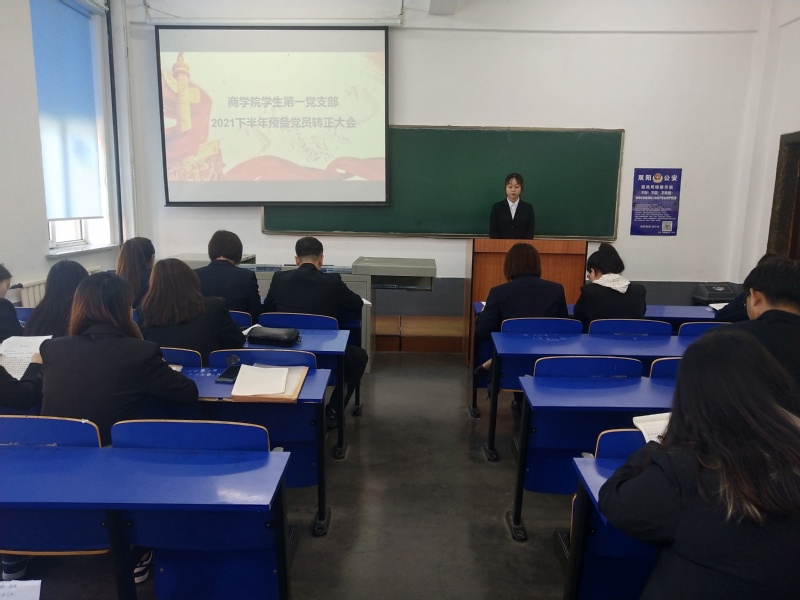 2021年9月2日,应商学院党总支相关工作部署和要求,商学院学生第一党支部在教学楼308教室举行了预备党员转正大会。本次大会的议题是讨论吕琦等11名同志申请转为正式党员的问题。商学院学生第一党支部正式党员以及预备党员出席了此次会议,会议由组织委员王琳同志主持,会议严格按照组织转正程序进行。