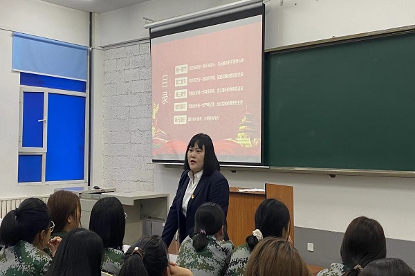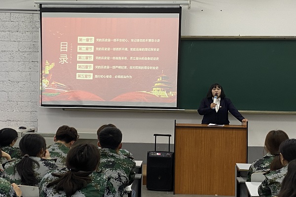戴军威讲述了中国共产党在发展历程中的重大历史事件,带领新生重温革命历史,回顾峥嵘岁月。让同学们深刻认识到我们建党百年来取得的成就是来之不易的,我们党之所以伟大,就在于经历世所罕见的艰难而不断取得成功。并围绕“神圣使命”这一话题展开论述,强调青年大学生要牢记初心使命,敢于担当作为,切实肩负起弘扬伟大建党精神的神圣使命,向第二个百年奋斗目标迈进。