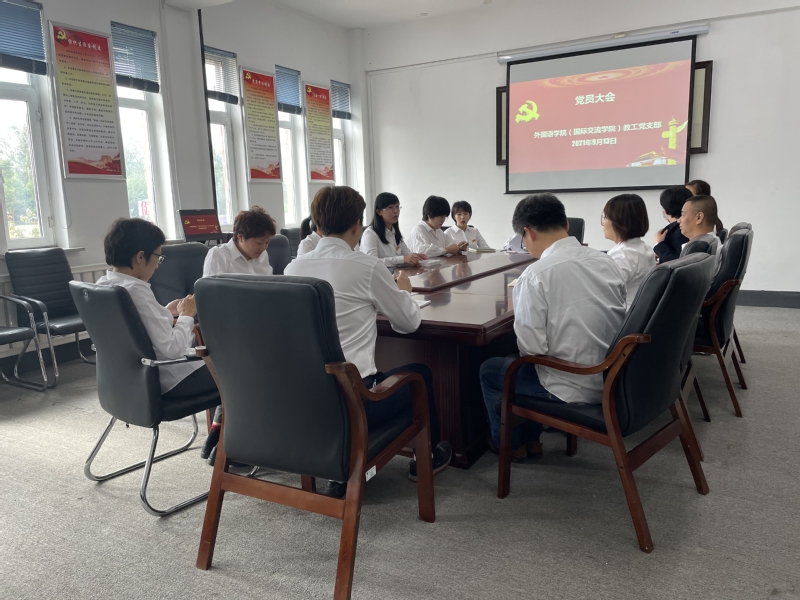 2021年9月13日,外国语学院(国际交流学院)教工党支部在综合实训楼201党团活动室召开2021年9月份党员大会,会议由教工党支部书记张昀主持。
