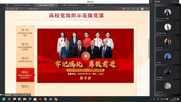 中国共产党成立101周年,引导激励师生奋进新征程、建功新时代,喜迎党的二十大胜利召开。工学院思想引领项目中心于7月1日组织全体学生党员在线上平台观看“牢记嘱托,勇毅前行”示范微党课第四讲。工学院全体学生党员和入党积极分子参加了本次活动。