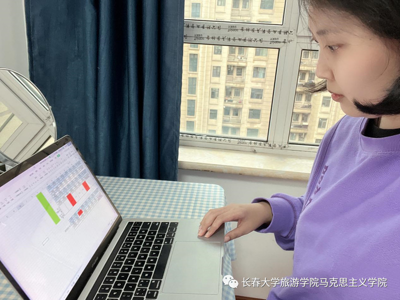 疫情期间,马铭晗同志负责马克思主义学院教职工的信息统计工作。从收集外省市返长人员统计表到学校新冠肺炎防控情况统计表,再到教职工每日上传双码、填报钉钉,她始终一丝不苟,认真谨慎。她已记不清收集了多少数据,上报了多少表格。每天在叮嘱老师上课、填报相关表格任务和催促大家上报数据之间循环往复。起早、熬夜是常事,坚守是常态,但她毫无怨言,默默坚守。