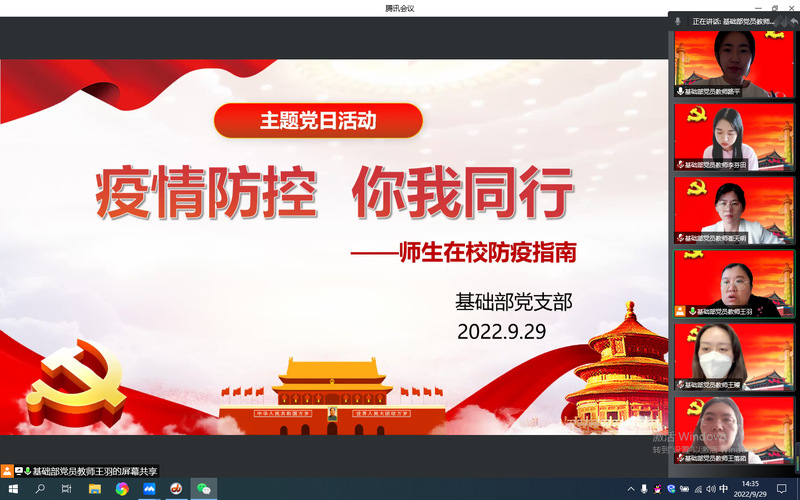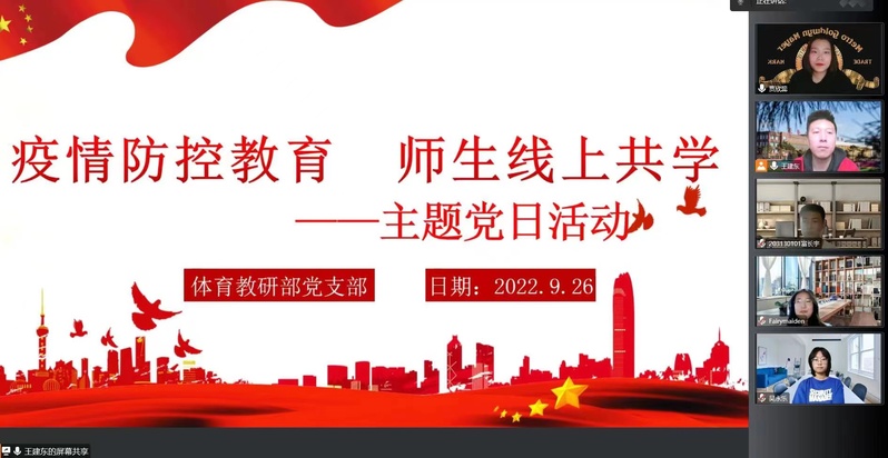 为落实学校关于疫情防控期间的工作要求,确保学生健康、校园安全和教学秩序,近日基础部党支部、体育教研部党支部分别召开了“疫情防控教育 师生线上共学”主题党日活动。