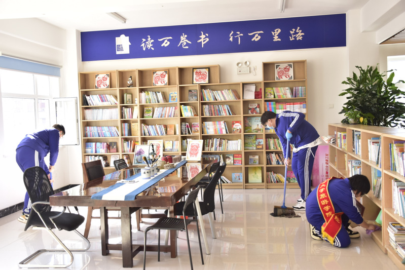 活动现场,奚亮率先投入工作,其余同学紧随其后地拿起劳动工具,分为三个卫生小组,各司其职,分工明确,积极主动对社区各个角落进行清扫,做到不给垃圾留死角,全面消除卫生盲区。经过大家的努力,整个社区书屋焕然一新,为辖区居民营造了一个干净整洁、放心舒适的阅读环境。