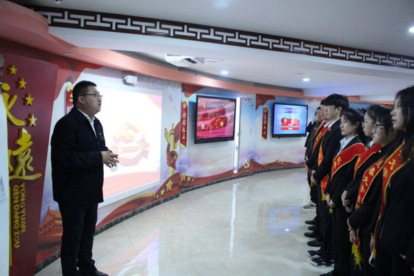 充分发掘优秀毕业生资源,强化理论武装,筑牢思想根基。商学院师生党员代表走进文庙5s党史教育基地,商学院17届优秀毕业生、长春市二十大宣讲团小组宣讲员于宗泽带领大家通过数字化方式,现场观看党史主题纪录片和影片,重温中国共产党在新民主主义革命时期、社会主义革命和建设时期、改革开放和社会主义现代化建设新时期、中国特色社会主义新时代四个历史时期的光辉历程,从“救国大业”“兴国大业”“富国大业”“强国大业”和“红色传承”五个方面讲解党的历史。“体验式”的现场课堂,让师生党员在光影穿梭中直观、清晰地学习、了解中国共产党百年历史,在情景互动中体会英雄人物的革命情怀。
