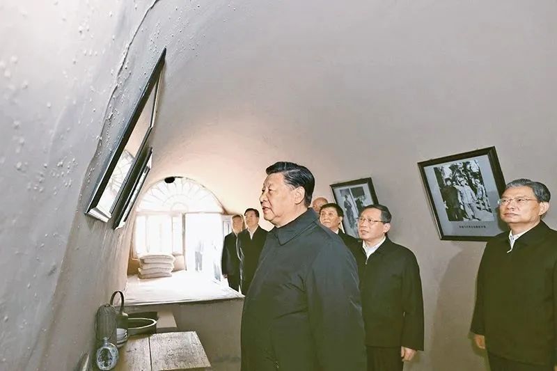2022年10月27日,习近平带领中央政治局常委瞻仰延安革命纪念地。这是习近平等在杨家岭参观朱德旧居。新华社记者 燕雁 摄