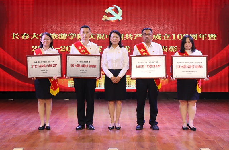 郑晓明为全国、全省“党建工作样板支部”和全省高校“党建优秀品牌”集体授牌。刘耀辉、范琳琳分别为先进基层党组织、优秀党务工作者和优秀共产党员颁发证书、奖牌。