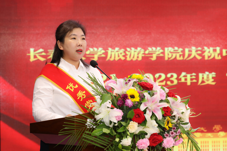 范琳琳在讲话中代表学校党委,向全校各级党组织,向默默耕耘在教学、科研、管理、服务等各条战线上的教职工党员,向勤奋学习、健康成长的青年学生党员致以节日的问候,并向受表彰的先进个人和优秀集体表示衷心地祝贺。她肯定了在新一届董事会的领导下,学校党建工作取得的各项成绩,号召各级党组织和广大师生党员要以今天的大会为起点,以受表彰的集体和个人为榜样,切实把思想和行动统一到学校各项决策部署上来,把智慧和力量凝聚到各项中心工作和重点任务上来,在全校范围内培树崇尚荣誉、追求卓越的良好氛围,通过身边人身边事教育影响广大师生,感染更多长旅人以爱校荣校为己任、以校兴我荣为追求,全身心投入学校新一轮发展改革建设的伟大洪流中。她向全校各基层党组织和广大党员提出四点要求:一要坚定不移加强党的领导,着力筑牢信仰之基。二要坚定不移持续固本强基,着力提升党建质量。三要坚定不移强化使命担当,着力汇聚奋进力量。四要坚定不移推进蝶变跃升,着力服务振兴发展。最后,她强调,全校党员都要用奋斗拥抱新时代,用实干开启新征程,用业绩助力新长旅,为早日实现“建设国内一流特色高水平民办高等学校”的宏伟目标作出更大贡献。