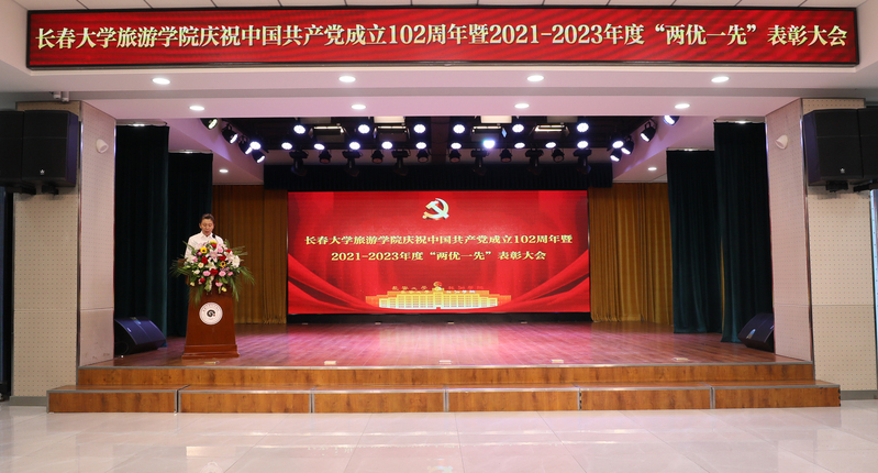 ▲学校召开庆祝中国共产党成立102周年暨2021-2023年度“两优一先”表彰大会