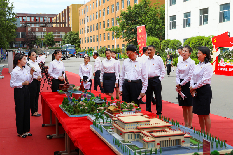 会前,学校领导和参会师生参加了“红色文化启智铸魂”专业+党建特色集中展示活动,各学院基层党组织以党支部联动的形式,将学生专业与党建工作深度融合,喜迎党的生日,进一步弘扬党的光荣传统,赓续红色精神血脉,激发了广大师生的澎湃热情和强大正能量,凝聚起奋力推进新时代学校高质量发展的磅礴力量。