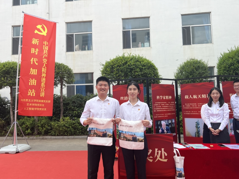 马克思主义学院直属党支部、艺术学院党总支和人工智能学院党总支联合开展的“新时代加油站”中国共产党人精神谱系宣讲,通过思政课老师现场讲解、扫描答题赢取小礼物的方式吸引了大量学生参与其中,在校园内形成学习中国共产党人精神谱系的浓厚氛围。