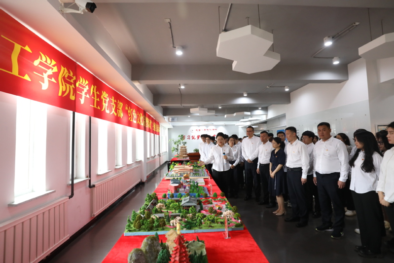 工学院、旅游文化学院和外国语学院(国际交流学院)3个学生党支部联合开展的“追寻红色圣地 传承革命薪火”红色景观模型展,将景观模型建造、红色旅游讲解、中国文化传播有机融合,不同角度深入讲解红色景观建筑模型背后的历史故事,进一步激发广大学生爱国爱党情怀。