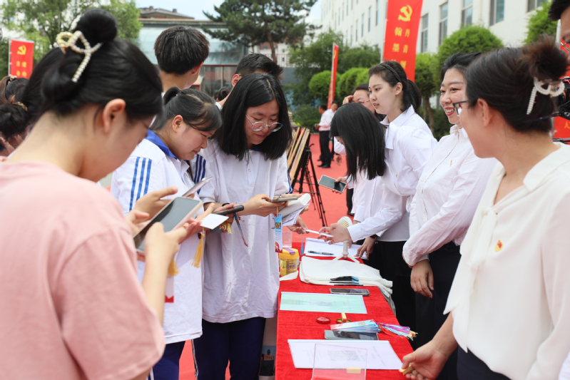 6月30日,主题党日集中展示活动在学校学子广场举行,展示现场学校领导、师生与活动讲解者交流互动,“沉浸式”体验了一场红色教育。