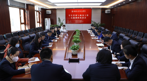 在调研过程中,各相关部门围绕“聚力管理服务育人,全力助推学生成长成才”主题,结合工作中遇到的难点和堵点,聚焦学团队伍建设、学生思想教育工作、学生管理与服务等问题展开交流,并对新形势下如何提升学生管理与服务水平的有效举措进行深入探讨。