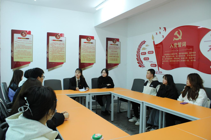 ▲郑雨佳老师与学生洽谈入党动机