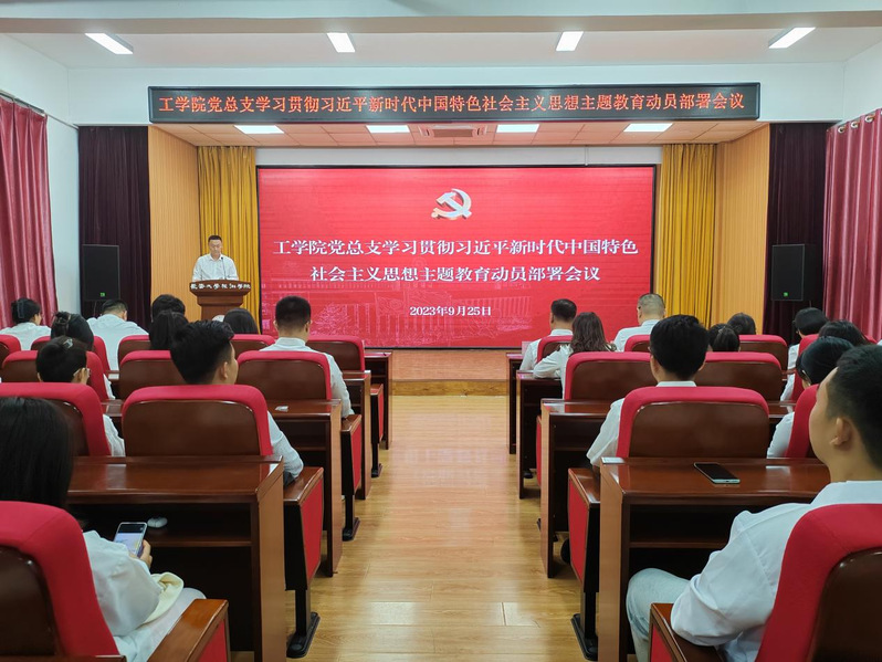工学院党总支认真贯彻落实学校党委主题教育工作部署,9月25日,在学校筑梦报告厅召开学习贯彻习近平新时代中国特色社会主义思想主题教育动员部署会议,详细解读工作方案,形成主题教育重点工作安排推进计划,明确理论学习、调查研究、推动发展、检视整改、建章立制等方面的目标任务、方法举措、责任分工和工作要求,筑牢高质量开展主题教育的根基。