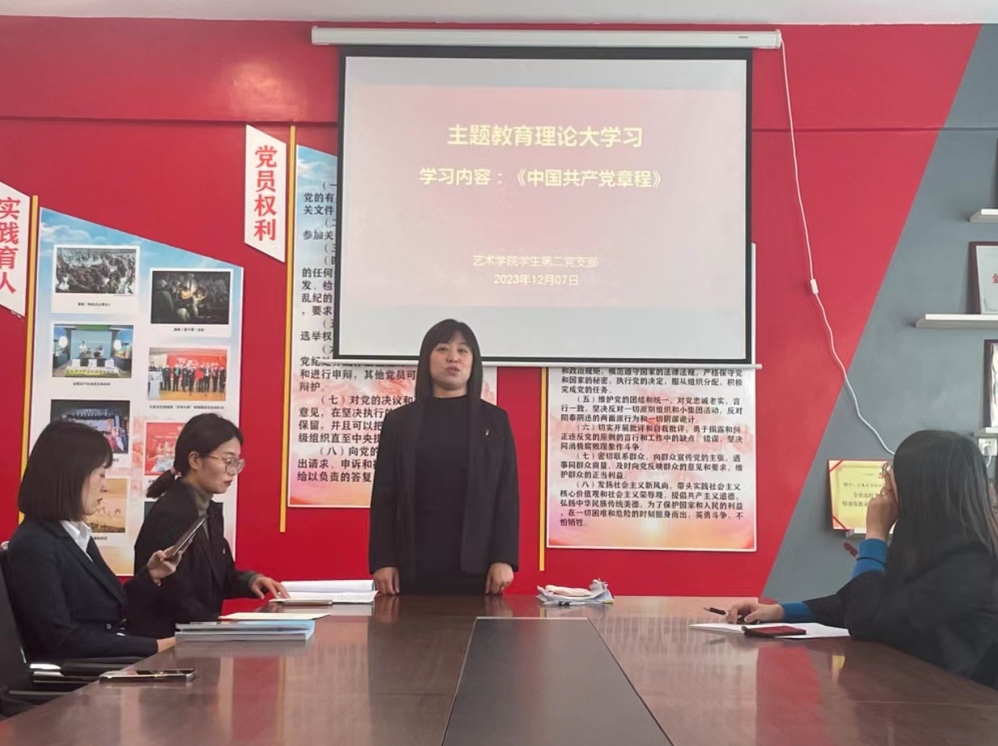 为扎实推进第二批学习贯彻习近平新时代中国特色社会主义思想主题教育走实、走深,进一步加强党员队伍建设,增强党性修养,提高党员学习质量,12月7日,艺术学院党总支组织各支部开展《中国共产党章程》理论大学习。