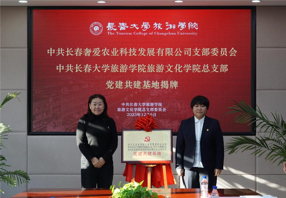 张锦华与中共长春奢爱农业科技发展有限公司支部委员沈丽晶进行党建共建揭牌