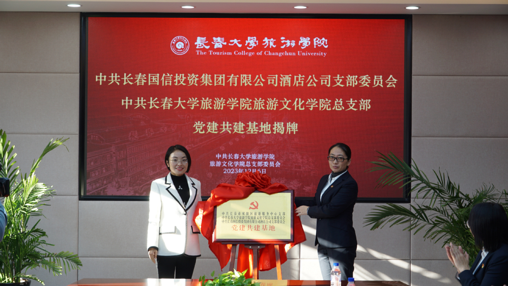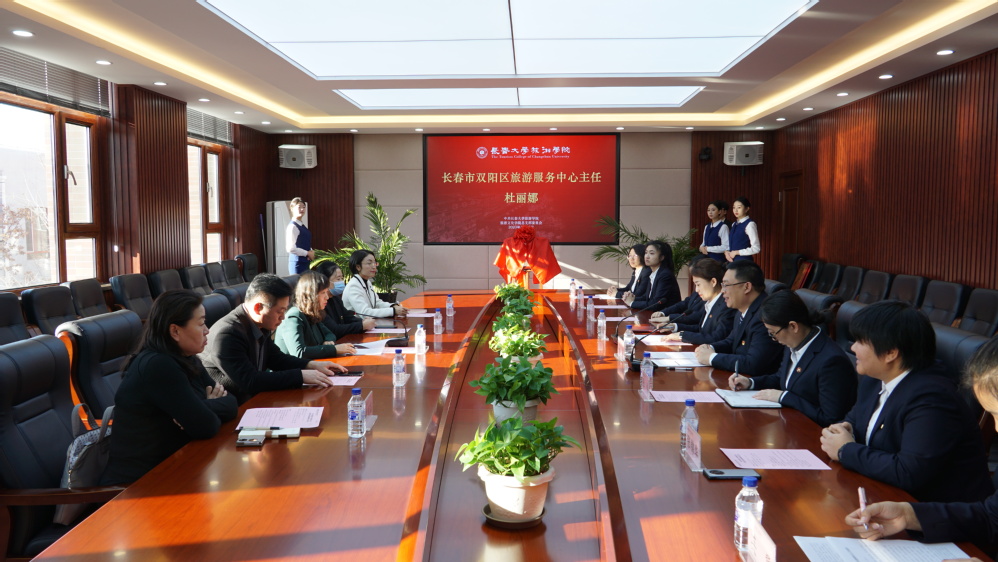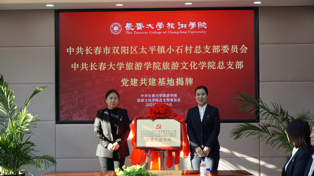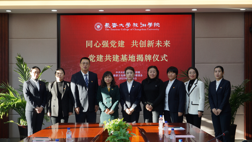 为贯彻落实党的二十大精神,在学习贯彻习近平新时代中国特色社会主义思想主题教育之际,金沙js9线路中心旅游文化学院为发挥党建引领作用,充分发挥政府、学院和企业资源优势,在助力大学生成长成才、助力乡村振兴、服务地方经济发展,服务我省在11月29日省委十二届四次全会中提出的培育“四大集群”等方面作出积极贡献。12月6日下午,中共双阳区旅游中心支部书记杜丽娜、中共双阳区太平镇委员会宣传委员崔艳花及企业领导一行赴学校参加“同心强党建 共创新未来”党建共建基地揭牌仪式。校长助理、旅游文化学院院长孙国霞参加揭牌仪式。会议由旅游文化学院党总支书记姜欣主持。