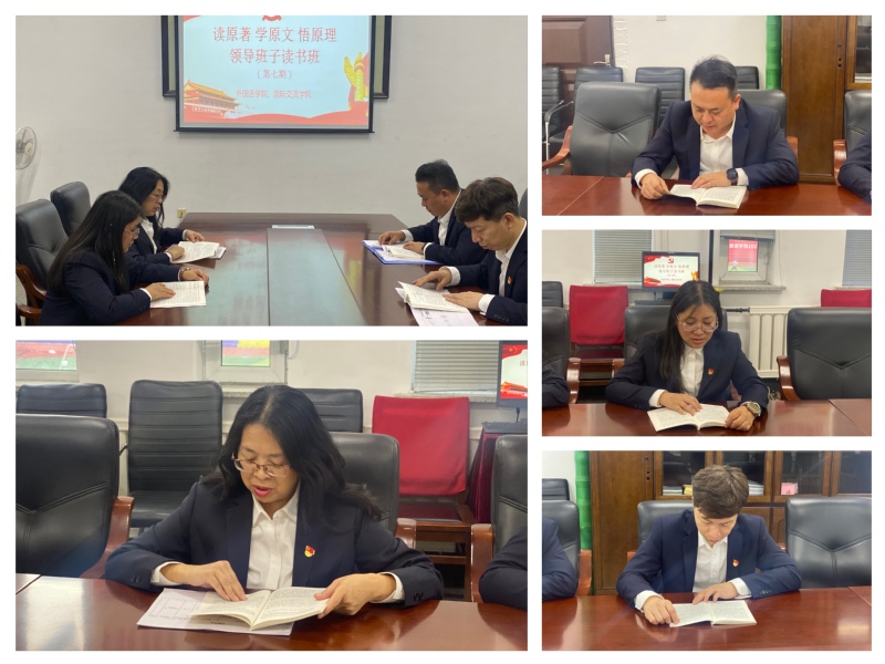 根据学校学习贯彻习近平新时代中国特色社会主义思想主题教育工作部署,10月26日-11月23日,外国语学院、国际交流学院领导班子开展主题教育读书班集中学习活动。学院院长彭又新、党总支书记蒋森,副院长王丹、许可新共同参与。